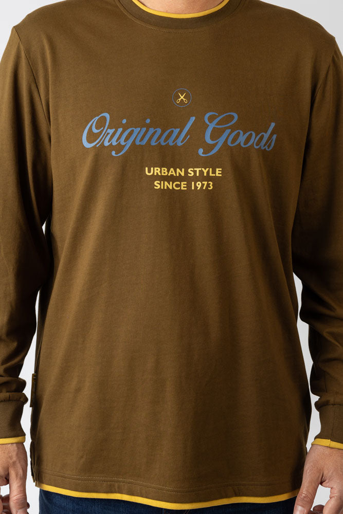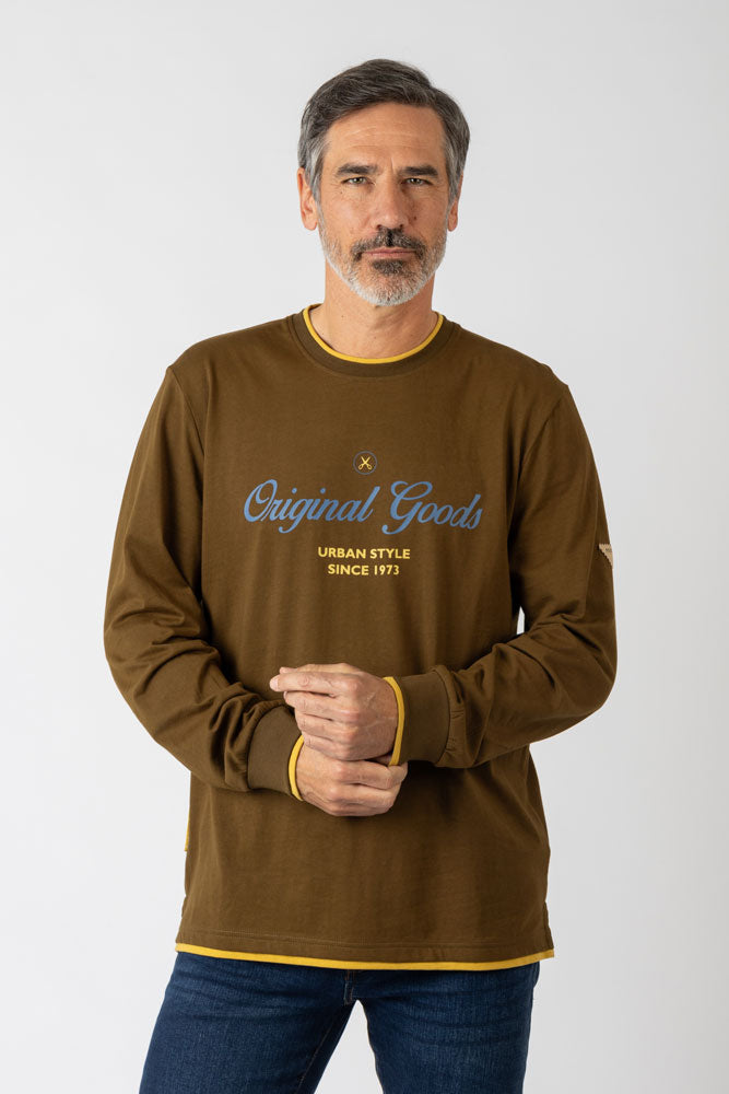 Camiseta estampada caqui. Diseñada para un estilo limpio y moderno. Manga corta. Composición: 100% algodón.