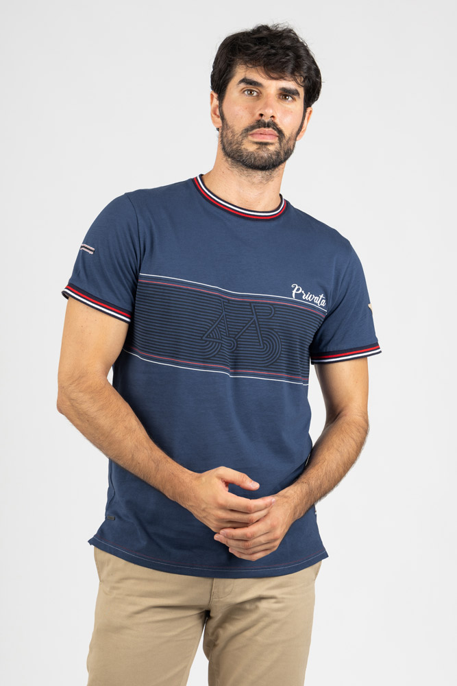 Camiseta con diseño frontal gráfico de inspiración deportiva, que aporta un estilo dinámico y moderno para el día a día.
