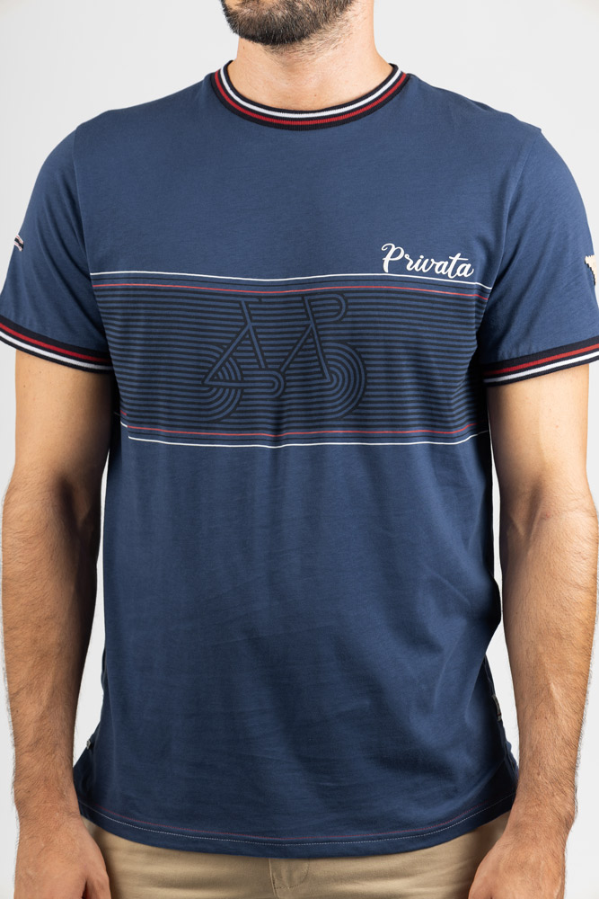 Mangas con puños ribeteados en contraste en color azul marino, blanco y rojo, aportando un acabado distintivo. Incluye detalle gráfico en el pecho y firma de marca.