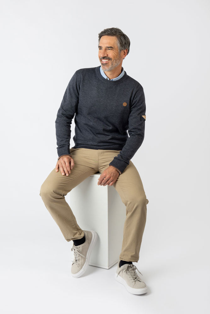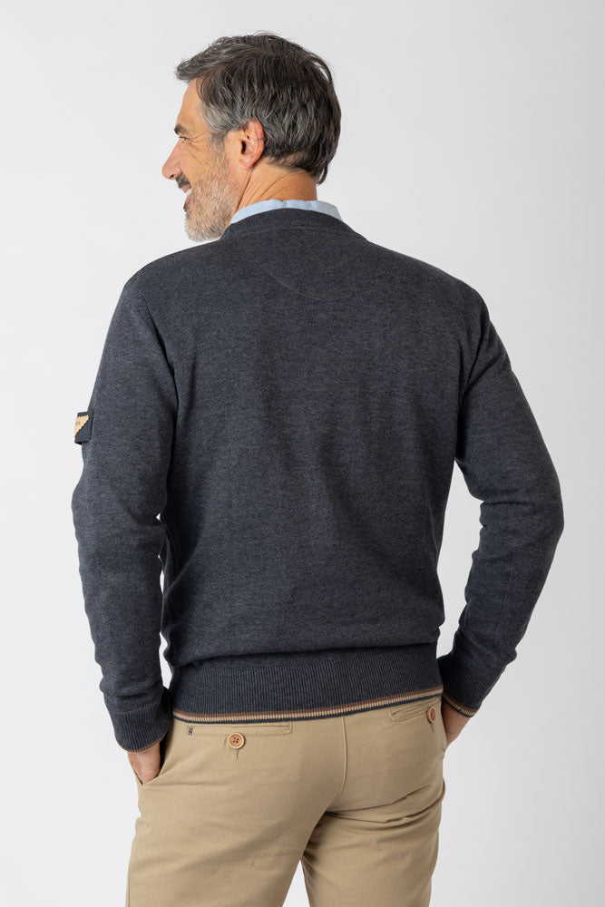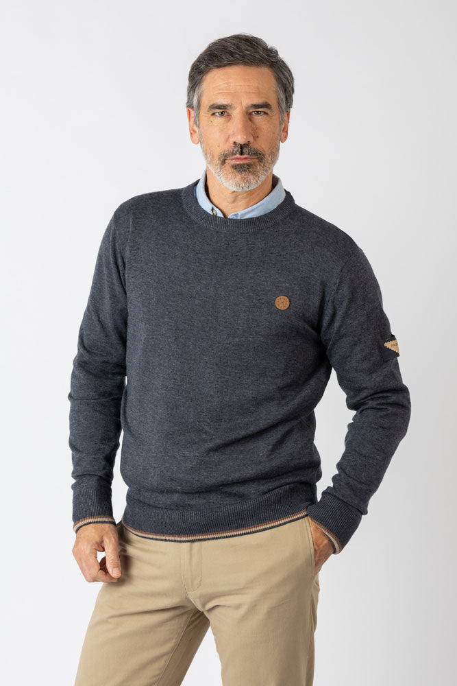 Jersey de punto cuello redondo azul marino. Ideal para entretiempo, con un toque cómodo y actual. Color azul marino.