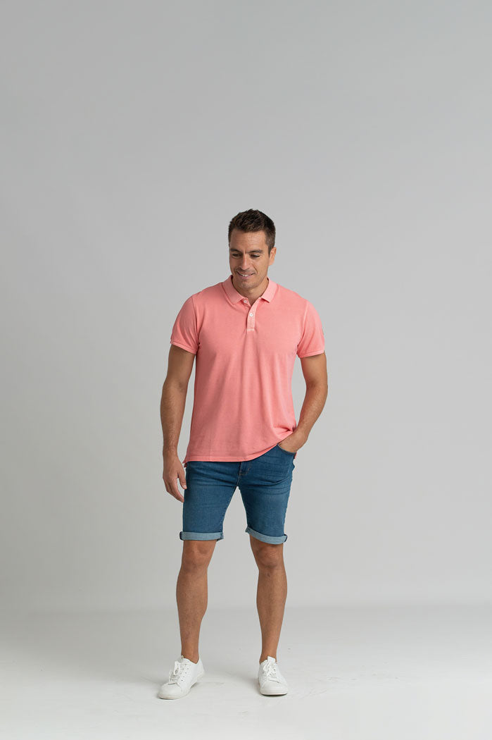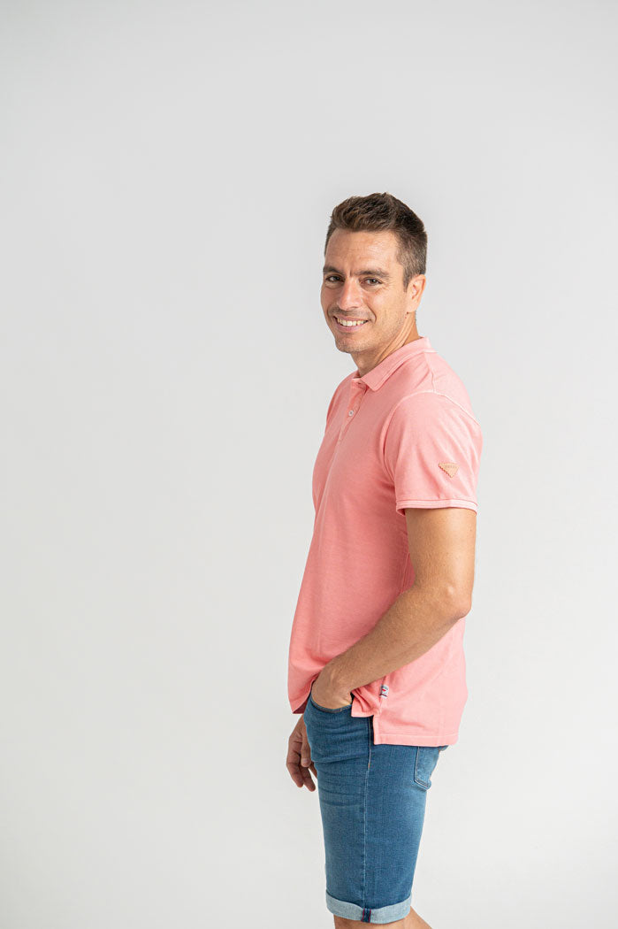 Polo piqué manga corta logo rosa. Combina muy bien con vaqueros o pantalón chino. Tejido de algodón.