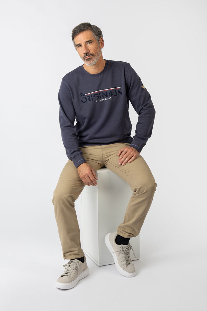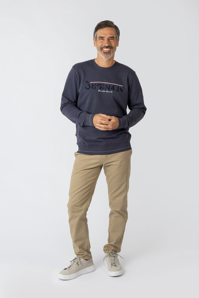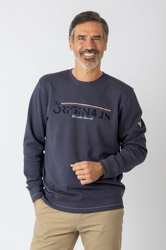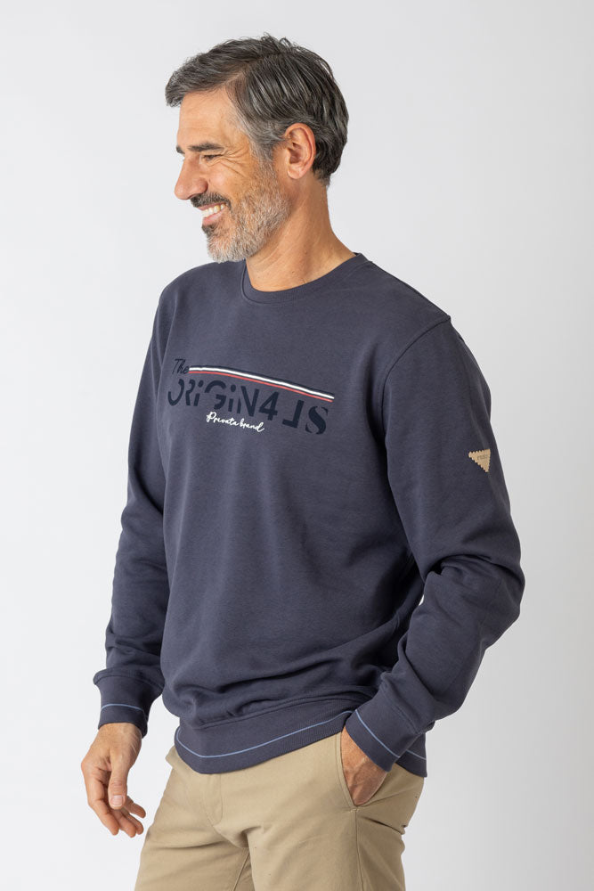 Sudadera sin capucha Azul. Diseñada para un estilo limpio y moderno. Composición: 60% algodón y 40% poliéster.