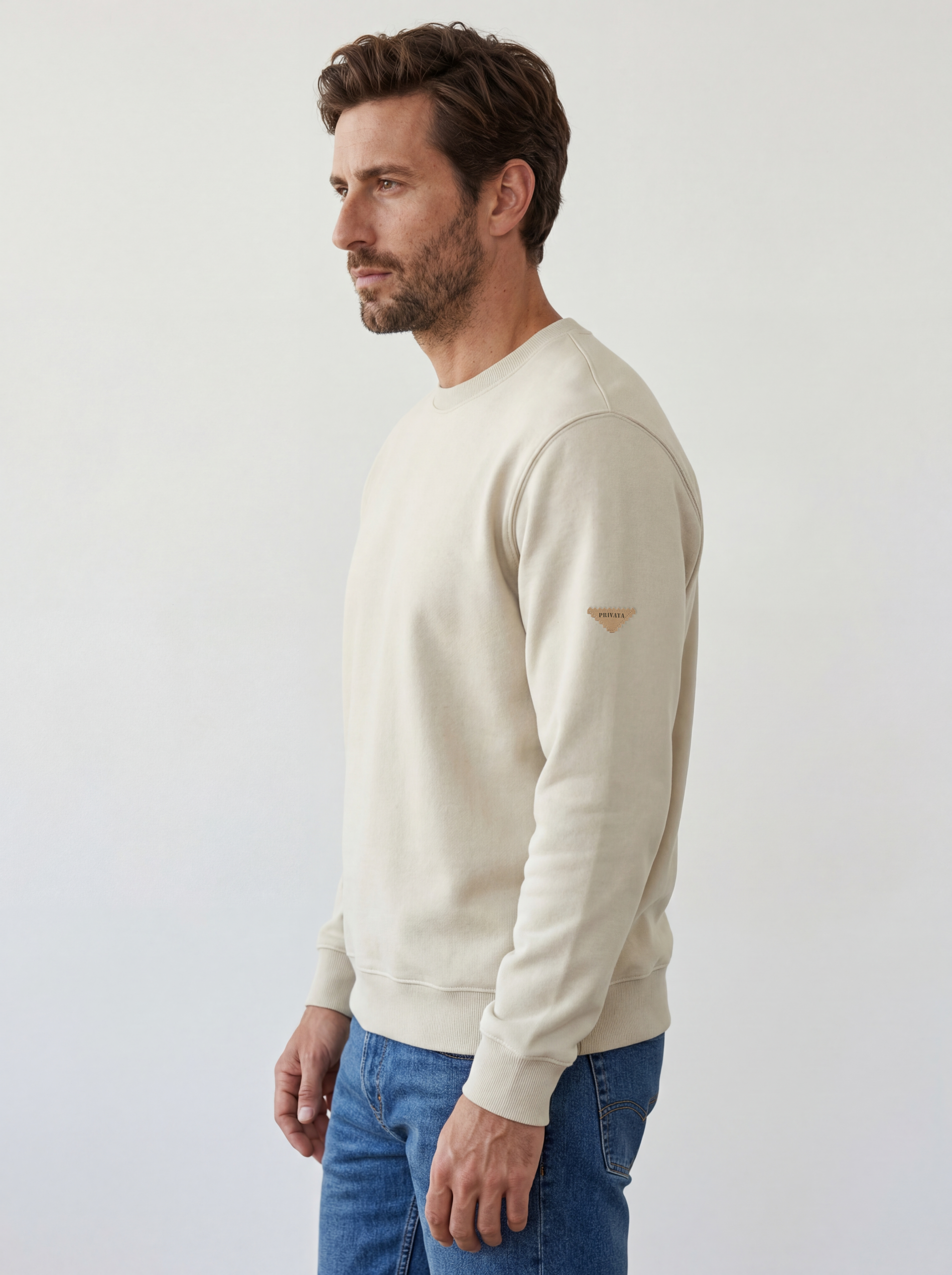Cuello redondo con acabado en canalé que aporta un ajuste cómodo. Tejido fino sin perchar en el interior, ligero y transpirable para los días más suaves.