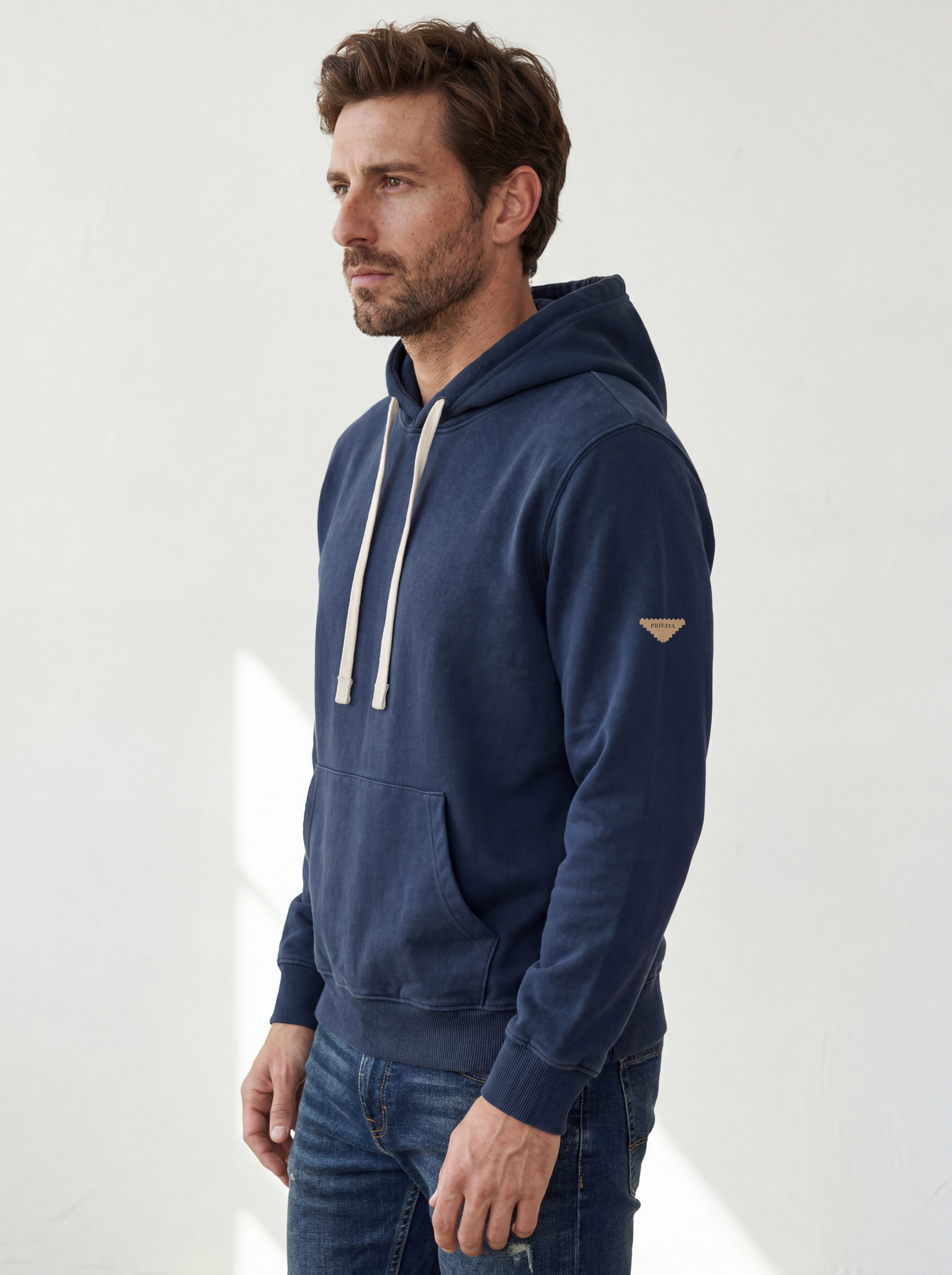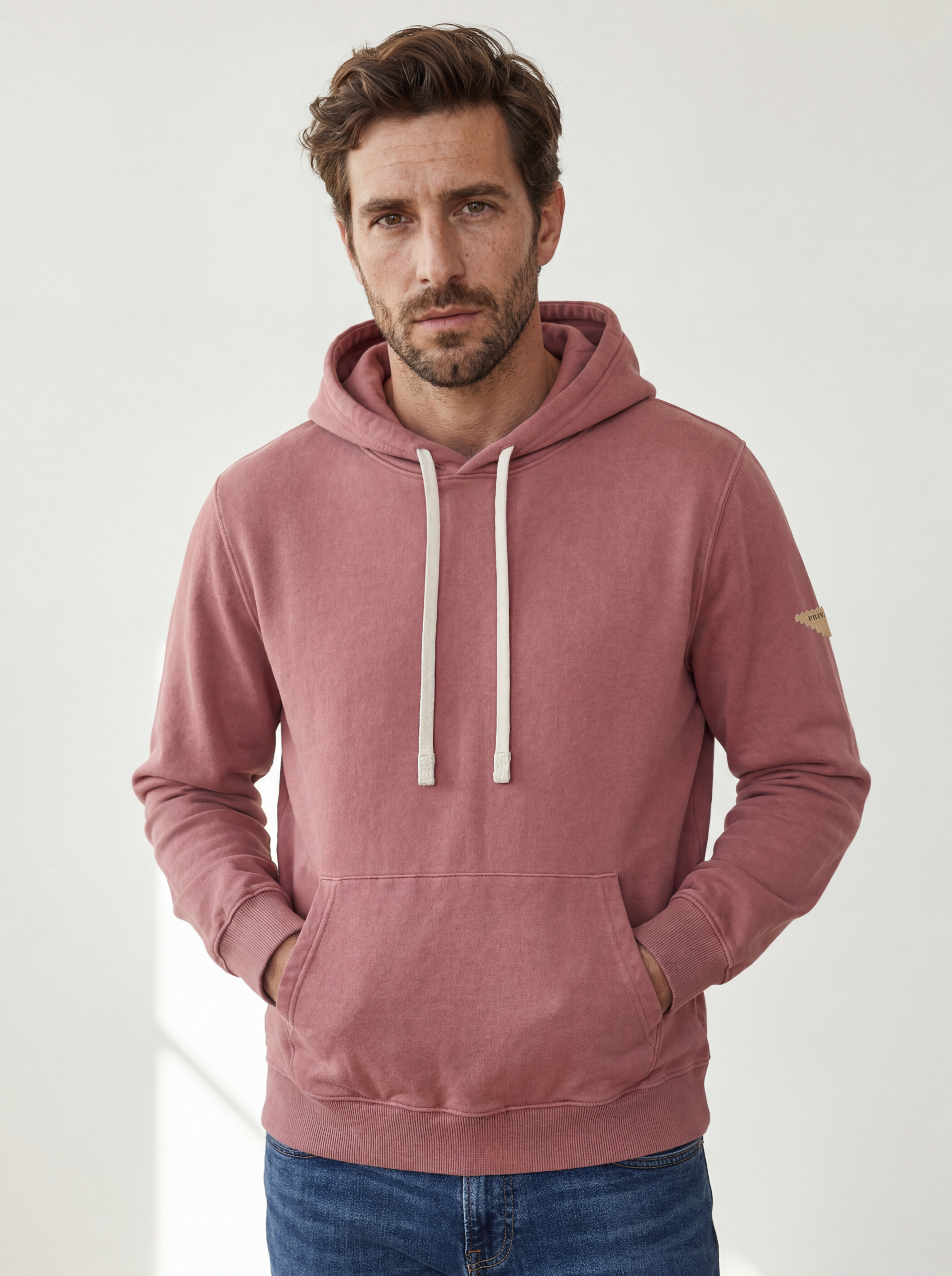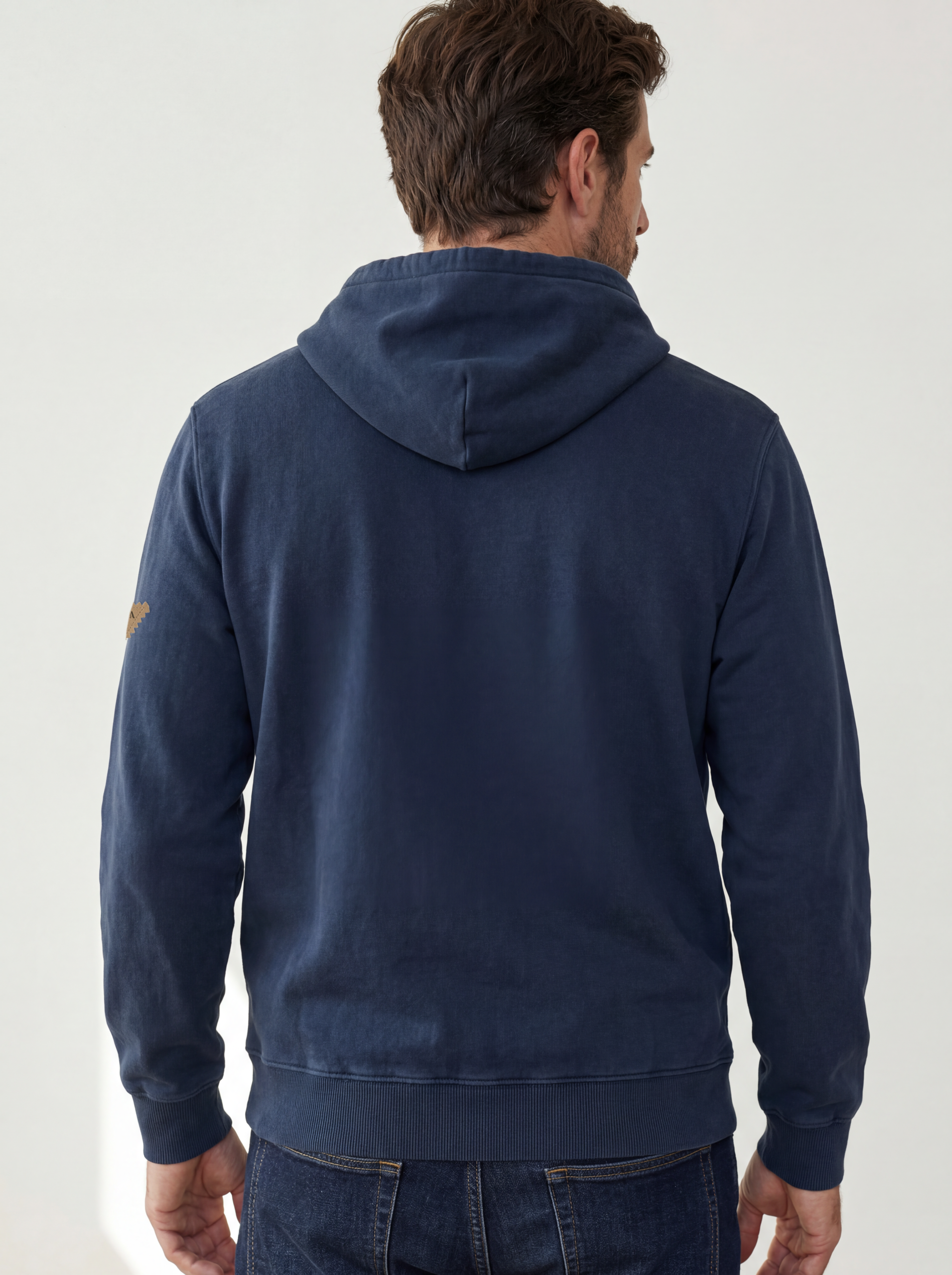 Capucha con cordones en contraste que aporta un toque distintivo. Tejido fino sin perchar en el interior, ligero y transpirable para los días más suaves.