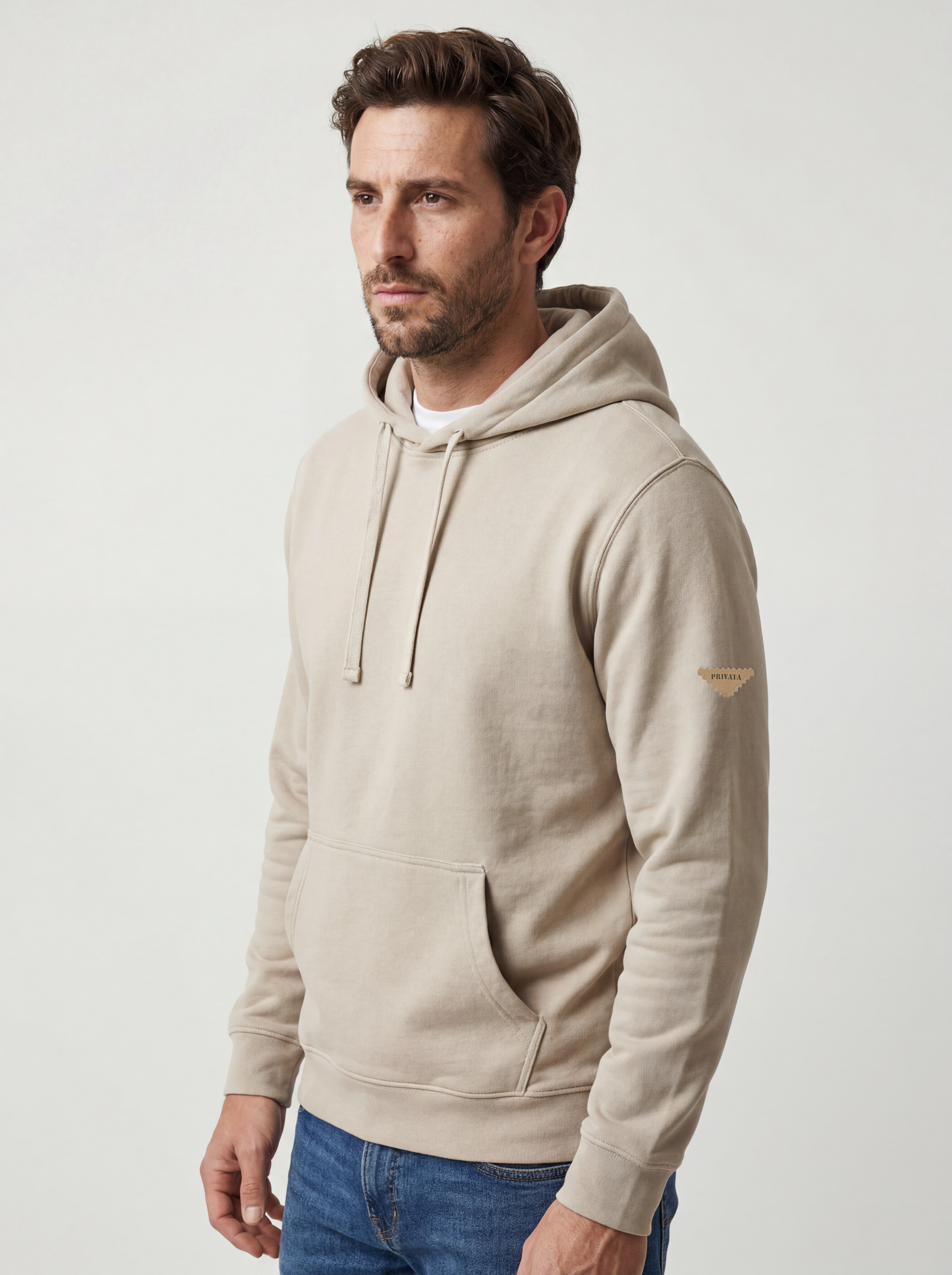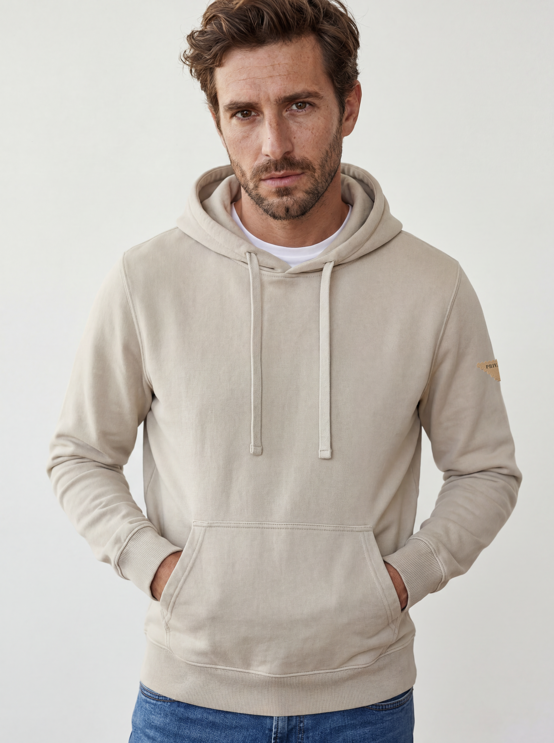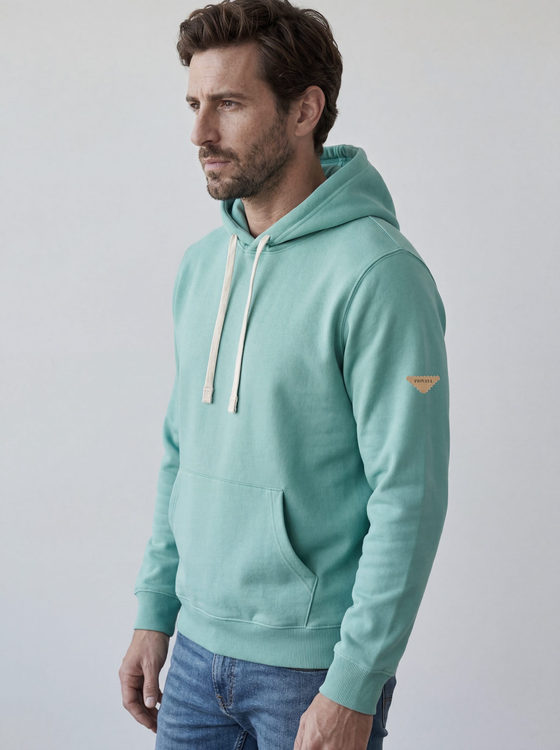 Capucha con cordones en contraste que aporta un toque distintivo. Tejido fino sin perchar en el interior, ligero y transpirable para los días más suaves.