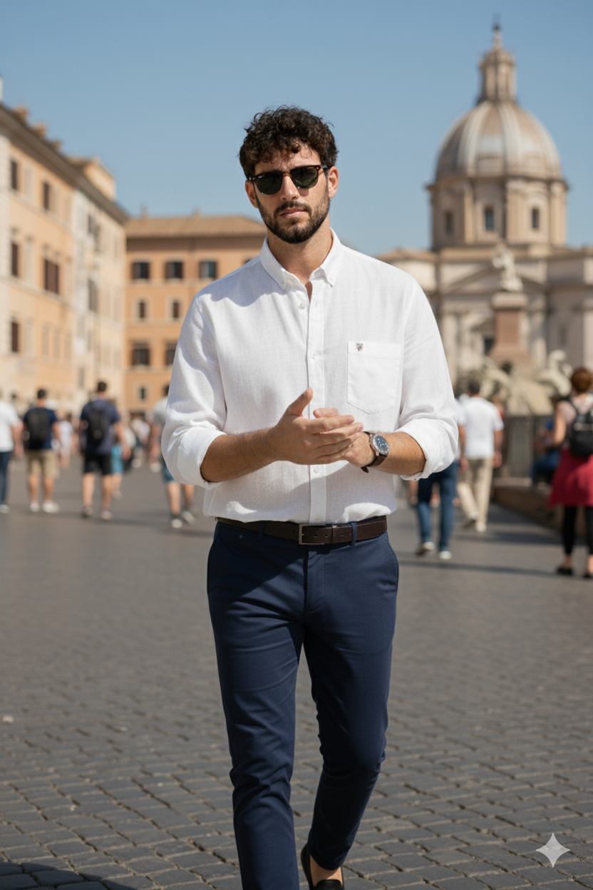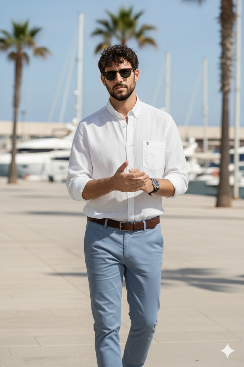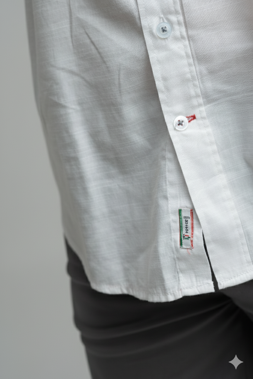 Camisa blanca de estilo veraniego, corte relajado. Las mangas están levantadas, perfecta para un look fresco y casual. Combina confort y moda para cualquier ocasión.