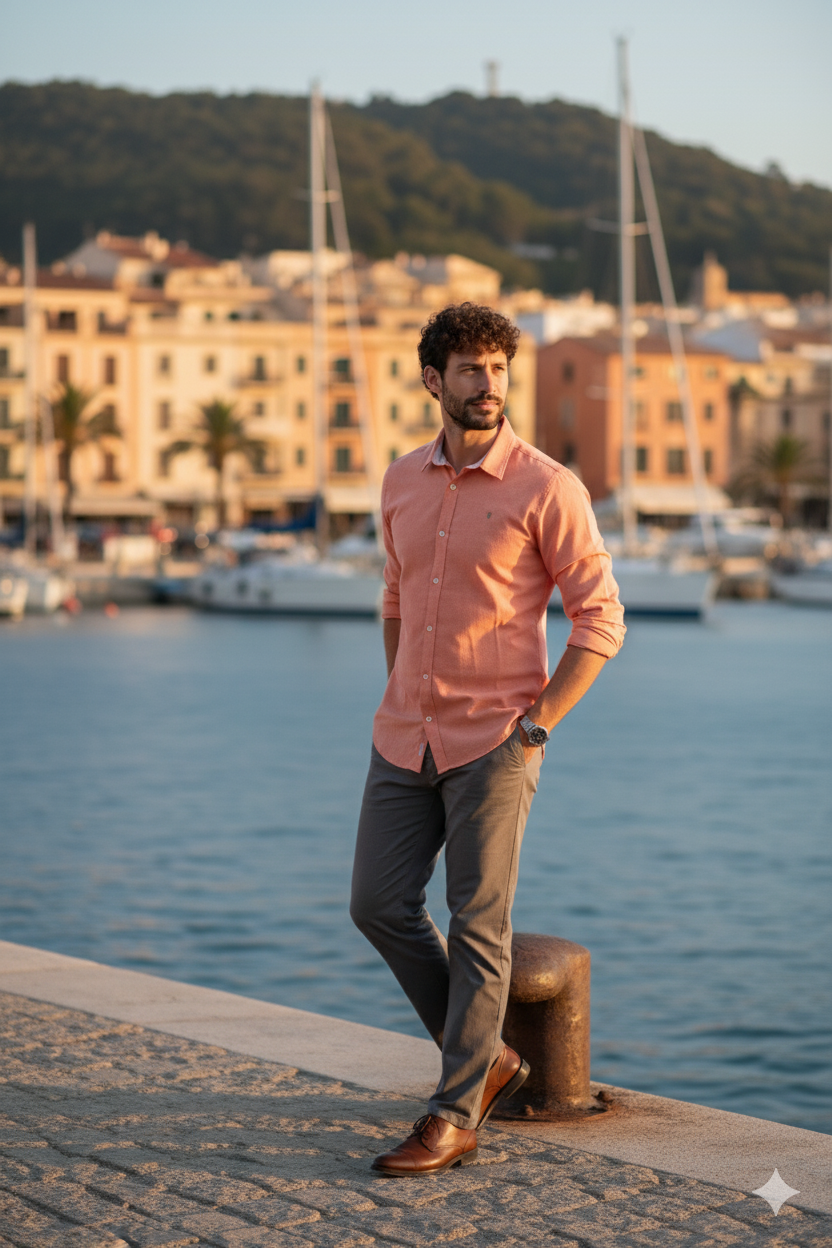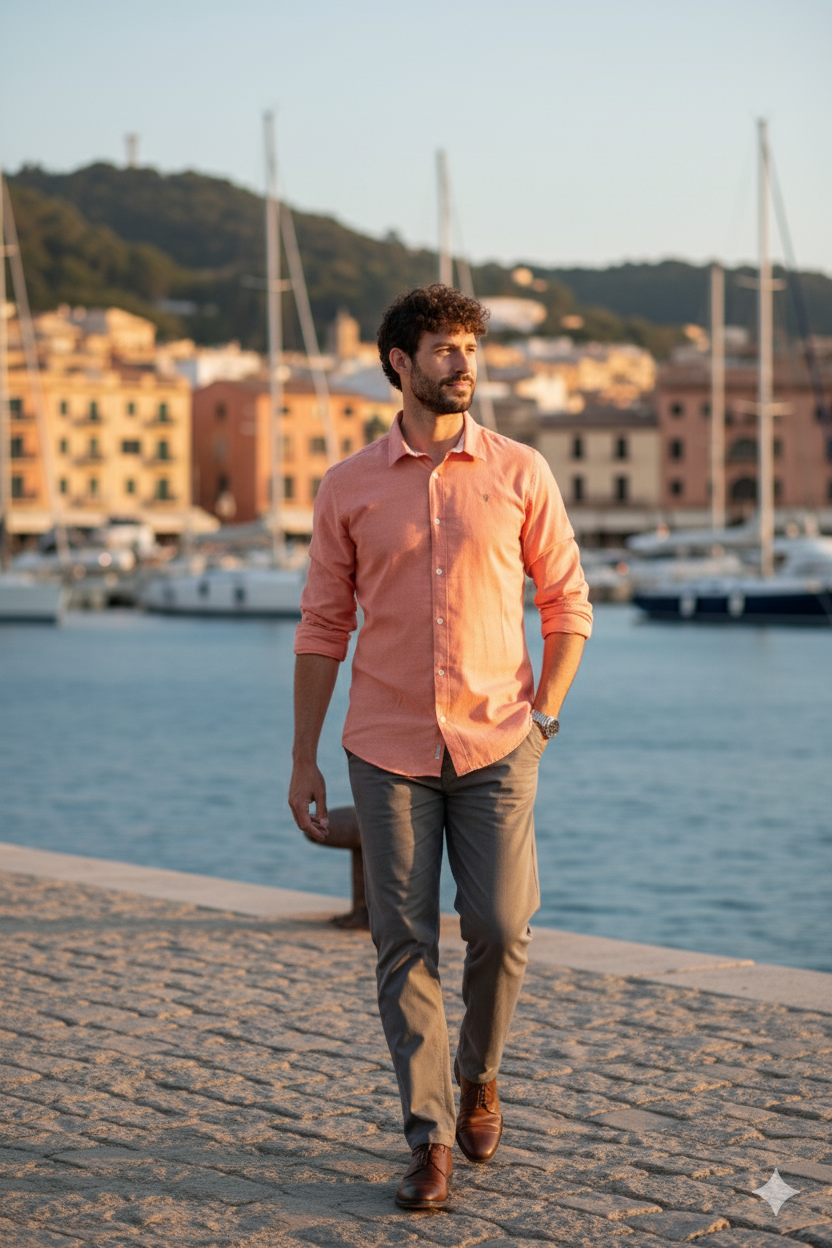 Camisa ligera de algodón en color coral, manga larga, corte clásico y cierre de botones. Versátil y cómoda, ideal para todas las épocas del año, combinando estilo casual con un toque elegante.