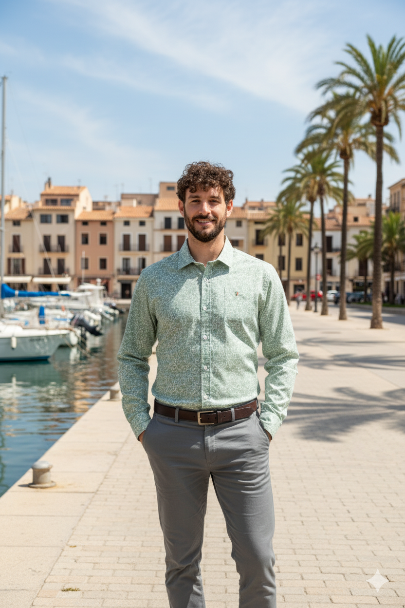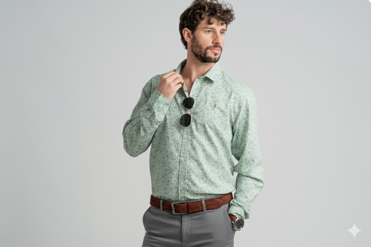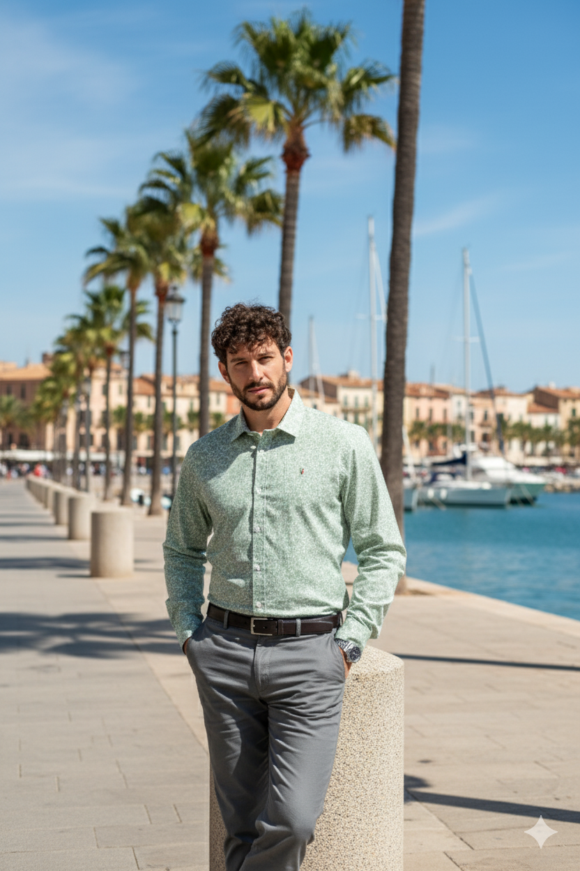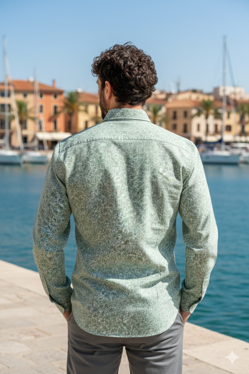 Camisa de manga larga con ajuste entallado. Su estampado sutil y su tejido transpirable aportan sofisticación y comodidad para cualquier ocasión en el Mediterráneo.