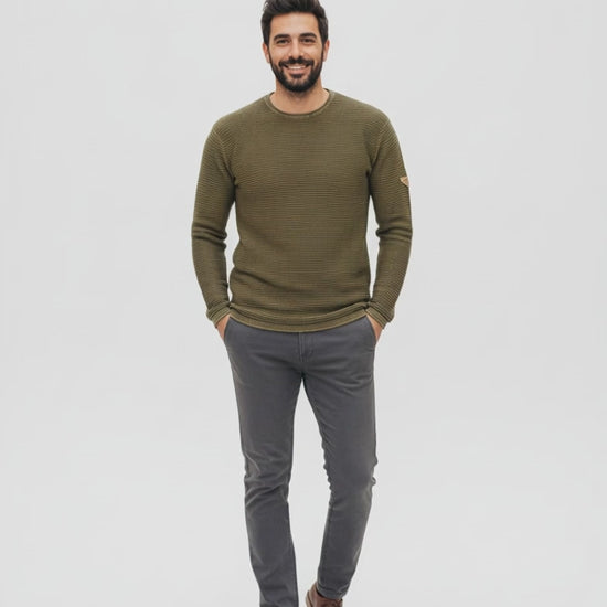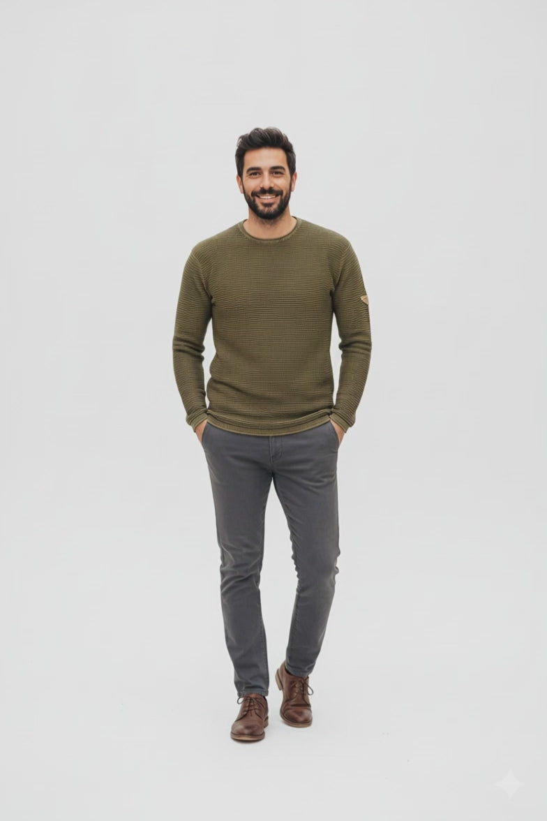 Jersey de Punto Estructurado 100% Algodón para Hombre | Suéter Casual Verde Militar/Caqui PRI2823 KAKHY