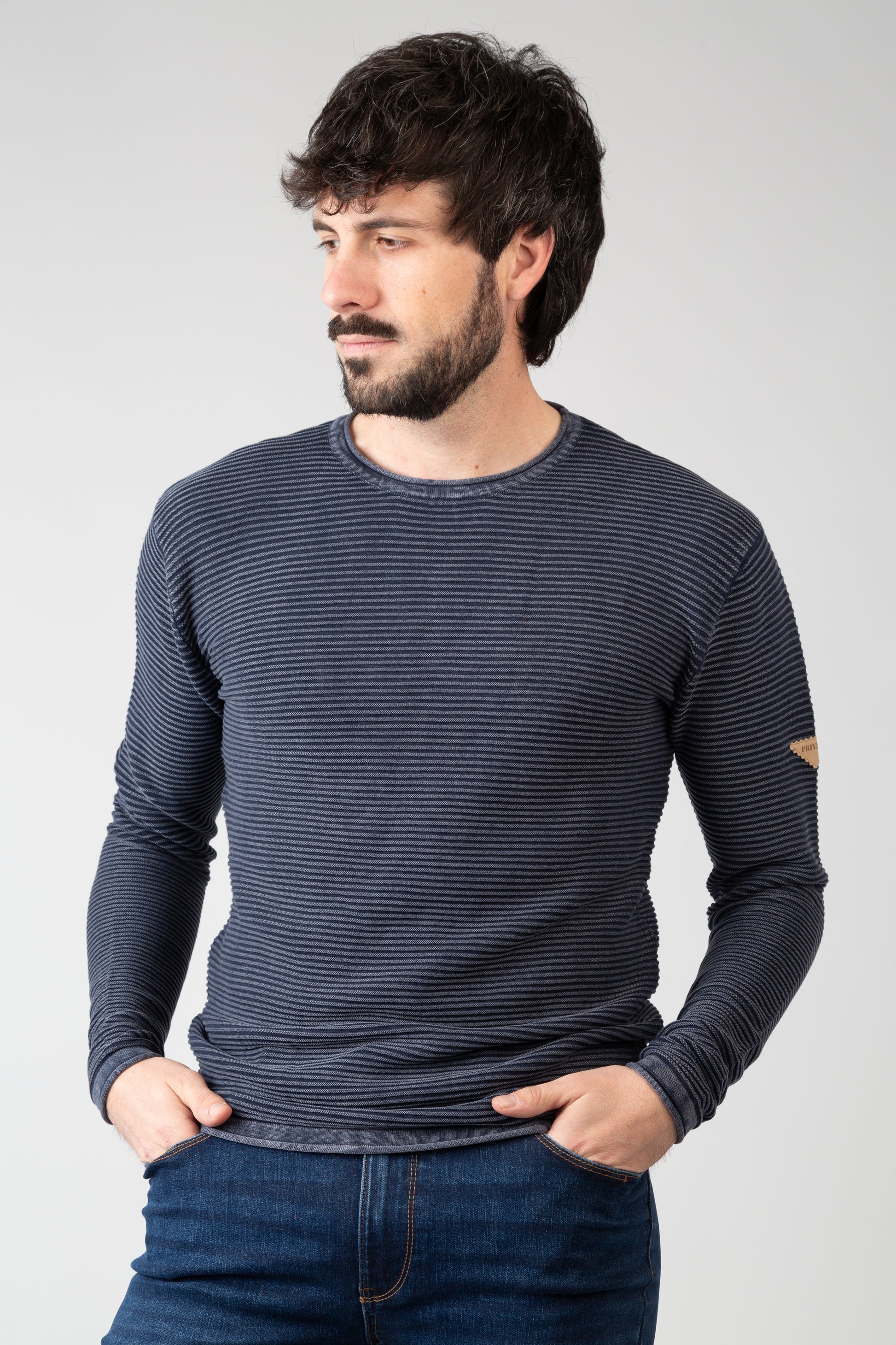 Jersey textura listado c/redondo lavado