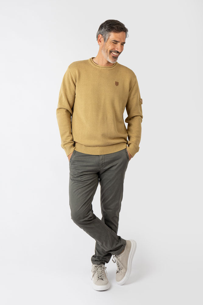 Jersey de punto liso con diseño minimalista y acabado confortable. Ideal para un look relajado y versátil en cualquier ocasión.