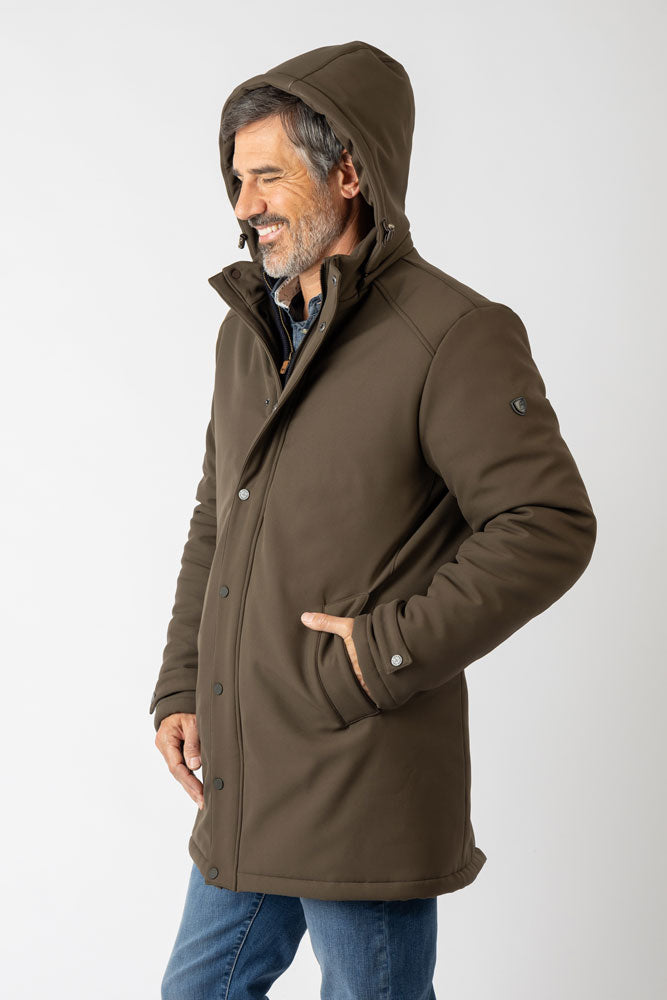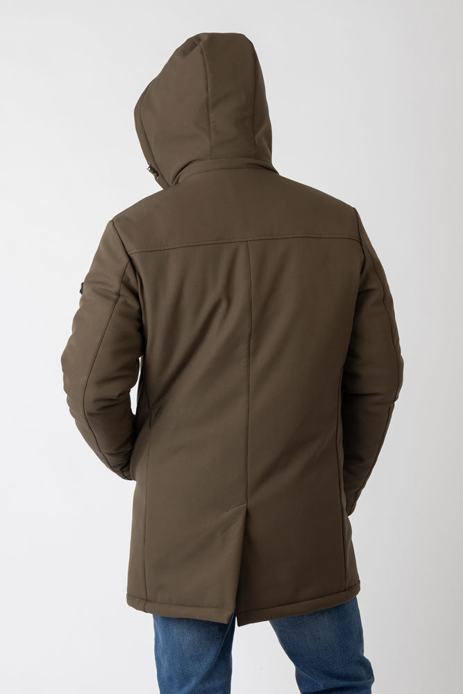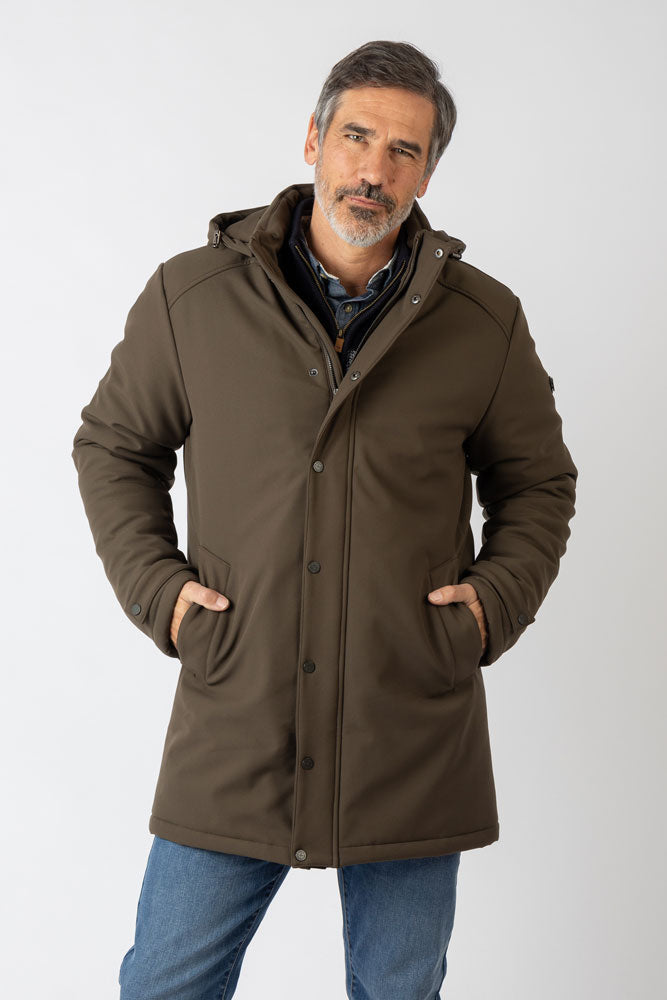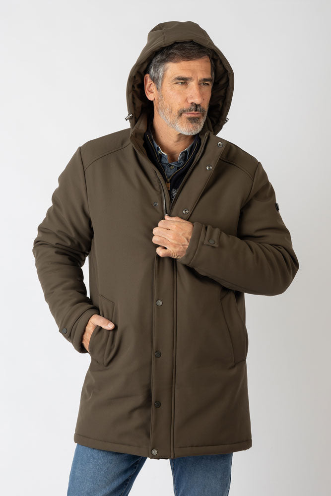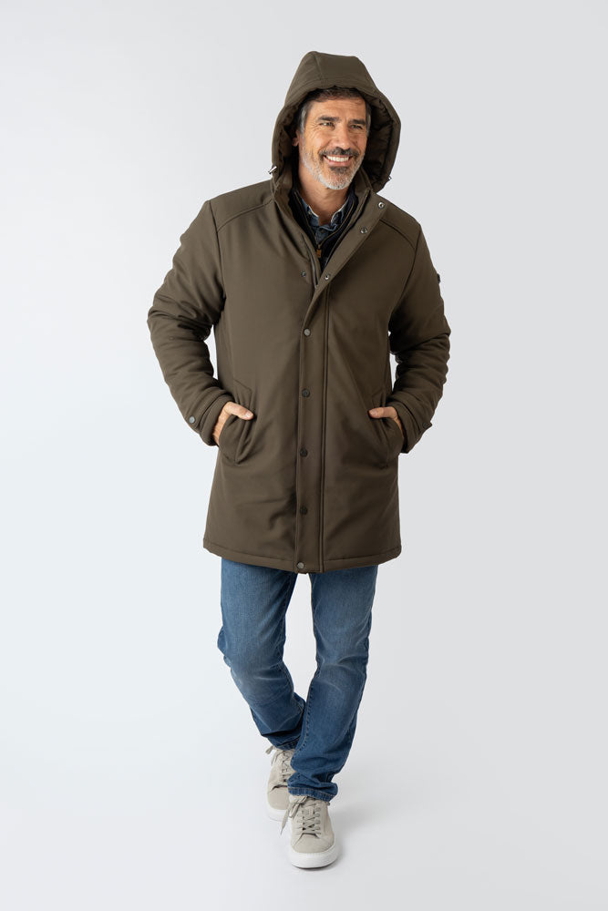 Chaqueta con capucha de diseño moderno, confeccionada en tejido técnico cálido y resistente.